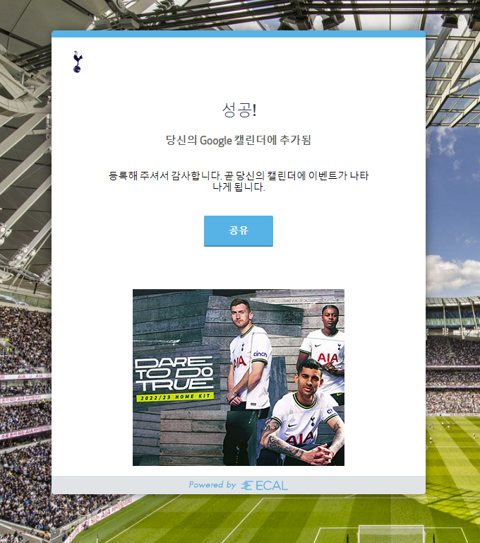 손흥민 선수가 활약하는 토트넘 경기를 보는 게 일상의 낙 중에 하나다 보니 일정을 자주 확인하는 편인데 경기일정을 볼 때는 아 며칠 남았구나 하지만 또 금세 까먹기 때문에 좀 찾기 편한 방법이 없을까 하다가 공홈에서 제공하는 서비스를 발견!